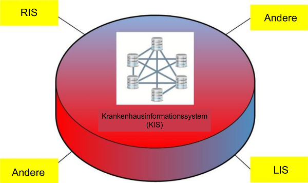 Innerhalb von (ungleichmäßig aufgebauten) sogenannten heterogenen IT-Netzwerken in einem Krankenhaus oder in einer Gesundheitseinrichtung kommunizieren verschiedene Softwareapplikationen direkt miteinander. So zum Beispiel holt sich eine Befundsoftware der Radiologie aus der Verwaltungssoftware eines Krankenhauses Patientendaten (Name, Alter, Geburtsdatum) ab und stellt den radiologischen Befund der Verwaltungssoftware in der elektronischen Patientenakte (EPA) wieder zur Verfügung. Dabei stellt das übergeordnete Kommunikationssystem das Krankenhausinformationssystem (KIS) dar. Mit dem KIS kommunizieren weitere Informationssysteme. Informationssysteme sind ein Verbund aus Hardware und Software mit dem Ziel, Daten auszutauschen. Man spricht auch von untergeordneten oder integrierten Informationssystemen. Zu diesen Informationssystemen gehören z. B. das Radiologieinformationssystem (RIS) oder das Laborinformationssystem (LIS).